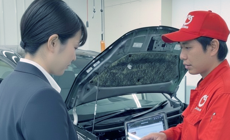 中古車を購入、すでに10万キロ近く走行しており、遠出もよくする女性の方なら、しっかり整備の1日車検で、タイヤ、バッテリーなどを少し早めに交換することをオススメしています。「エンジンが掛からない」「パンク修理ができない」などのアクシデントが気になる女性の方はロードサービスをオススメしています。最近はJAFよりも、かなり条件が良く安いサービスもあります。