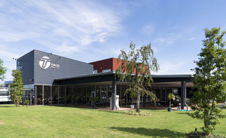 - 2023年にリニューアルオープンした綺麗な店舗でお客様をおもてなしいたします。玄関前には話題の新型車の展示も。場内には未使用車から中古車まで、常時100台以上の在庫を展示しております。